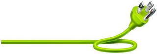 The mark consists of an electrical plug having three silver prongs with grey and black shading. The prongs extend from a green housing in an upper, right diagonal direction. A green cord with dark green shading extends away from the housing in the lower, left diagonal direction and forms a loop, where the cord then extends from the loop, to the left, in a horizontal direction.