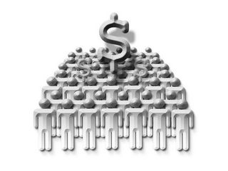 The mark consists of a stylized group of people with a stylized dollar sign above and partially overlapping such stylized group of people and with two smaller dollar signs, one to the left and one to the right of the aformentioned stylized dollar sign, within such stylized group of people.