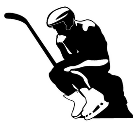 The mark consists of a hockey player wearing a helmet and skates and sitting next to an upstanding hockey stick.