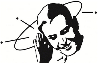 The mark consists of the design of a man's head and neck with his hand to his ear and a halo/ring around the man's head.