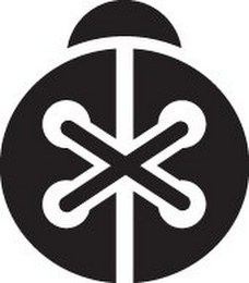 The mark consists of two mirror-image vertical semi-circles which together form a circle. Cross-stitching in the shape of the letter "X" connects the left and right sides of the circle. A smaller, slightly curved horizontal semi-circle rests above the circle. The mark, when viewed as a whole, resembles a beetle, the body of which resembles a button.