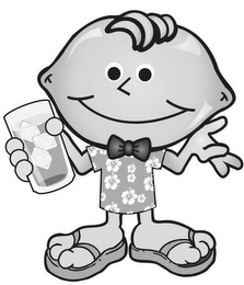 The mark consists of a character with a head in the shape of a lemon with facial features and the character is wearing sandals, a flowered shirt and a bow tie and is holding a drink in a glass containing ice cubes.
