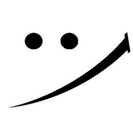 The mark consists of two circles representing eyes with a stylized slash from right to left representing a mouth to form the image of a smile.