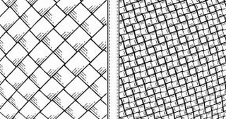 The mark consists of a configuration of a design feature of a handbag. The mark consists of interwoven strips of fabric in a diagonally overlapping pattern on the left side and intertwining strips of fabric braided together creating a wicker-style pattern on the right side. In the center of the mark appears two dotted vertical lines representing stitching on the handbag. The stitching is not claimed as a feature of the mark.