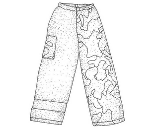 The mark consists of a three-dimensional design of an article of clothing, namely, pants and shorts used for beachwear and swimwear incorporating two different terry cloth fabric patterns, namely, a solid pattern and an image bearing pattern. The patterns are divided along the vertical midline of the garment body separating the two pant legs extending from the waistband to the garment crotch. Each pant leg is similarly shaped and is of similar length, a solid terry cloth fabric on forms one half of the article of clothing and a patterned "camouflage" terry cloth fabric forms the other half of the article of clothing with the solid cloth half of the article of clothing incorporating a towel border and a pocket fabricated from the patterned "camouflage" cloth fabric of the opposite leg positioned approximately mid-thigh on its lateral outer surface.