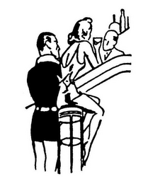 The mark consists of a figurative drawing of a standing man wearing a sport jacket and a woman in a dress sitting on a stool at a bar, in front of a bartender with bottles on a shelf above the bartender, all atop a transparent background.
