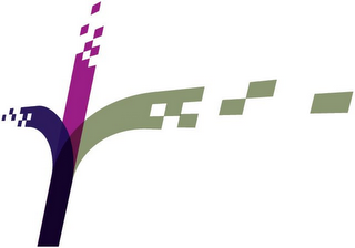 The mark consists of an abstract central column in dark pink with a purple and dark purple column stemming to the left and an olive green column stemming to the right, each column featuring white square-shaped cut-outs near the top. The background of the entire mark is white.