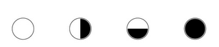The mark consists of Four circles in a row. The first is empty, the second is filled in on its right half, the third is filled on its bottom half, and the fourth is completely filled in.