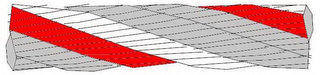 The mark consists of a sequence of spiral lines representing a strand of wire rope appearing as two lines of no color, followed by one line of red, followed by one line of white, followed by two lines of no color, followed by one line of red, followed by one line of white, the colored lines representing the origin of manufacture.