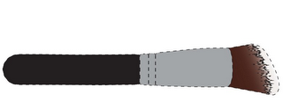 The mark consists of the colors glossy black, metallic silver, brown (Pantone 5789C) and white applied to a cosmetic brush, with the color glossy black applied to the handle, the color metallic silver applied to the ferrule, the color brown (Pantone 5789C) applied to the bristles emanating from the ferrule, and the color white applied to the tip regions of the bristles remote from the ferrule. The dotted lines are intended to show the position of the mark and are not part of the mark as shown.
