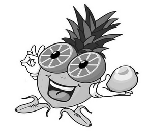 The mark consists of an illustration of a character with a citrus body, pineapple top, banana feet, orange eyes and gloved hands holding a fruit.
