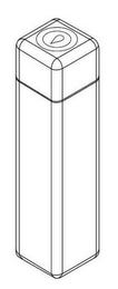 The mark consists of a three- dimensional bottle design of a rectangular prism with radiused edges and an indented design on the top surface of the bottle cap featuring a drop of water within a circle.