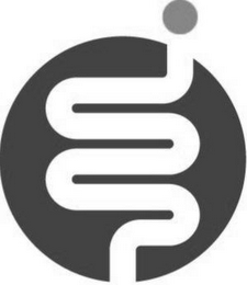 The mark consists of a partially shaded circle containing a thick, wavy line below an off-centered smaller shaded circle, all of the above representing a stylized intestinal tract.