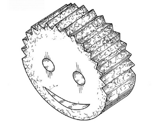 The mark consists of the configuration of a cleaning sponge having the appearance of a round smiling face with ridges formed at the top to resemble hair.