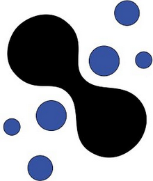 The mark consists of a stylized depiction of a dog bone in black surrounded by six blue filled circles with black outlining. The background of the entire mark is white.