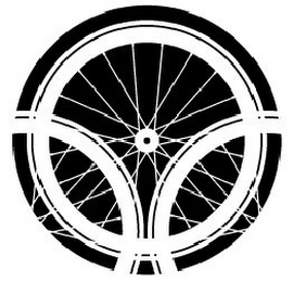 The mark consists of a stylized depiction of a bicycle wheel overlapped on its bottom half by two other bicycle wheels, with only a portion of each additional wheel being visible.