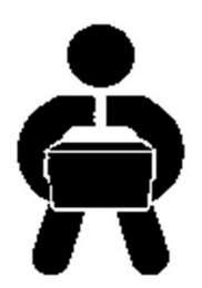 The mark consists of design of a stylized figure of a human holding a box.