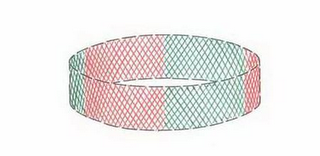 The mark consists of equal width, alternating red and green color bands on cylindrical netting for wrapping and transporting trees. The cylindrical configuration depicted in broken lines is not claimed as a feature of the mark but is used to indicate placement of the mark on the goods.