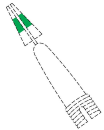 The mark consists of the color green applied to bristles of interdental brushes forming a band of green colored bristles in the center or middle of the brush head and the matter shown in broken lines is not part of the mark and serves only to show the position or placement of the mark.