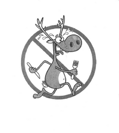 The mark consists of a cartoonish caricature of a deer carrying utensils taking a stride in an upright running position, within a barred circle.