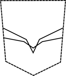 The mark consists of a pocket stitching design comprised of two intersecting V-shaped elements, each of the V-shaped elements having lines extending at an angle away from the ends of the lines forming the open portions of the respective V-shaped elements. The broken or dotted lines indicate the placement of the mark on the goods and are not claimed as a feature of the mark.