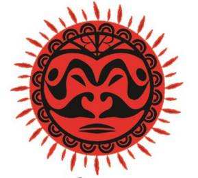 The mark consists of a stylized image of the sun. The sun presents a red face with short rays extending that are also red. The face presents the image of face that is black. The eyes, nose, lips, and ears are black. There are also several black circular like shapes around the face of the sun.