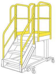The mark consists of the color yellow as applied to the goods. The goods comprise prefabricated modular platforms and stairs with handrails and ladders, made of metal. The dotted outline is not part of the mark and serves only to show placement of the mark in a typical configuration of the products.