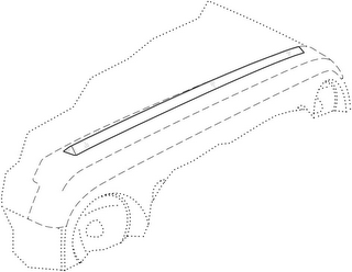 The mark consists of a configuration of a triangular prismatic projection extending along a hood shield. The portions of a hood shield shown in dashed lines and the portions of a vehicle shown in dotted lines do not form part of the mark.
