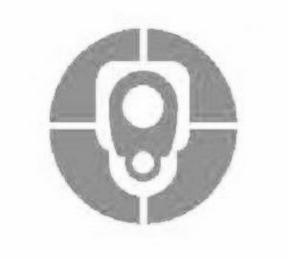 The mark consists of a stylized design of the front view of a gun muzzle, surrounded by a circular design broken into quadrants to appear to feature the crosshairs of a gun sight.