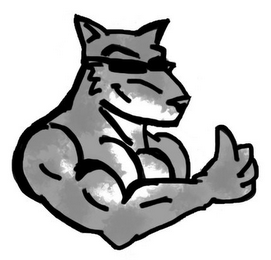 The mark consists of a well-muscled dog wearing sunglasses and making a thumbs-up gesture.