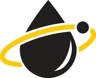 The mark consists of a fanciful drawing of black drop of oil, orbited by a gold ring, with a small black circle on the upper right-hand part of the ring.
