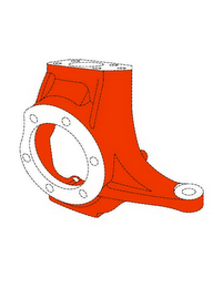 The mark consists of a shade of the color orange applied to a steering knuckle. The representation of the goods shown in dotted lining is not part of the mark.