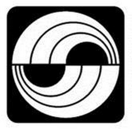 The mark consists of a circle within a box. The circle is cut in half horizontally by a line. Each half of the circle contains curved lines. The curved lines on the top half of the circle are larger to smaller going left to right. The curved lines on the bottom half of the circle are larger to smaller going right to left.