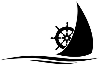 The mark consists of a single sail and a helm partially obscured by the sail, both riding atop a low-amplitude, sinusoidal depiction of waves.