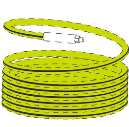 The mark consists of the colors chartreuse and black as applied to the entire hose body of the goods wherein the color chartreuse appears on the entire surface of the body of the hose and the color black appears as a single longitudinal stripe on the hose body of the goods. The color white in the mark is not part of the mark, but is used merely to indicate a functional part of the hose that is not claimed as part of the mark. The dotted outline of the goods is intended to show the position of the mark on the goods and is not part of the mark.
