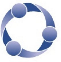 The mark consists of a circle comprised of a continuous, twisted blue band overlaid by three smaller, solid, blue circles.