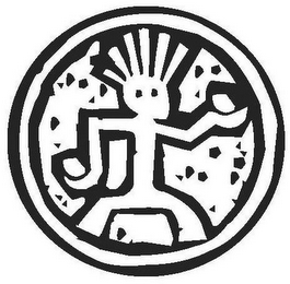 The mark consists of a circle encasing a design of a person with its legs spread, holding a stone in each hand. The hand on the left when looking at the image is waist level, while the hand on the right when looking at the image is shoulder level. Both palms are facing upwards. The person in the design has its hair standing up in six individual lines.