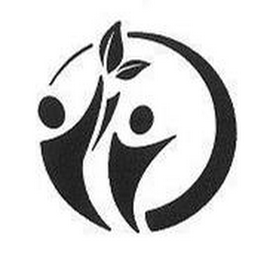 The mark consists of an image of two people comprised of a circle head and a grotesque shaped triangular body, one of whom has outstretched arms with two leaves extending therefrom, all enclosed with in a partial circle shape.