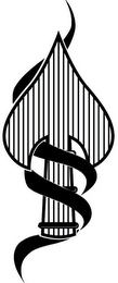 The mark consists of an upright spearhead with vertical stripes and two parallel ribbons flowing through the base.