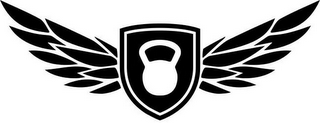 The mark consists of A kettlebell within a shield with wings on either side of the shield.
