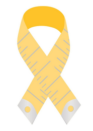 The mark consists of an awareness ribbon colored yellow with a repeating pattern of gray hash marks such that the ribbon resembles a tape measure. Additionally, the ends of the ribbon are colored gray with a yellow circle to resemble the metal ends of a tape measure.