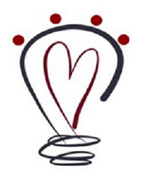 The mark consists of a stylized design of a light bulb drawn in black that contains a red heart inside of the bulb and four red dots above the top of the bulb.