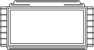 The mark consists of a rectangular design depicting a jukebox composed of three concentric rectangles with two thin rectangles on each side. The thin rectangles are each intersected by seven horizontal lines in a striped pattern. Connected to the top of the three concentric rectangles are two conjoined rounded rectangular shapes containing three separate horizontal lines. Connected to the bottom of the three concentric rectangles is a smaller rounded rectangular shape containing one horizontal line.