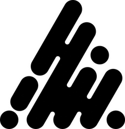 The mark consists of a triangle shaped figure consisting of four diagonal, shaded, and partially connected oblongs; one diagonal shaded oblong; and 3 shaded circles.