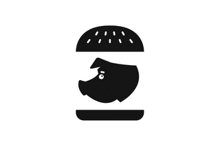 The mark consists of a graphical depiction of a hamburger bun with an image of a pig's head inside the bun.