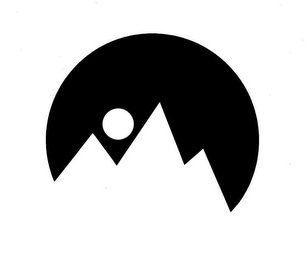 The mark consists of a circle with sections removed to resemble the silhouettes of jagged, triangular mountains with a circular sun rising over the mountains.
