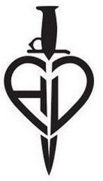 The mark consists of a dagger extending through the middle of the outline of a heart with the handle above the heart and the point below the heart.