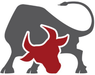 The mark consists of a stylized bull with a red head and horns and grey body.