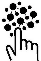 The mark consists of the outline of a hand with the index finger extended, the foregoing depicted under a graphic representation of molecules.