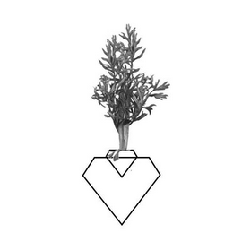 The mark consists of a smaller diamond shape inset into a larger diamond shape such that a heart is formed by the outline of the two respective shapes with a stalk emerging from the top of the inset diamond shape.
